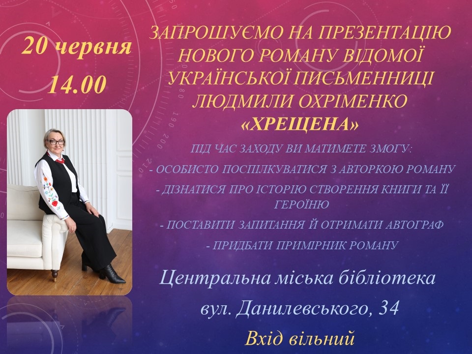 Презентація нового роману Людмили Охріменко «Хрещена»
