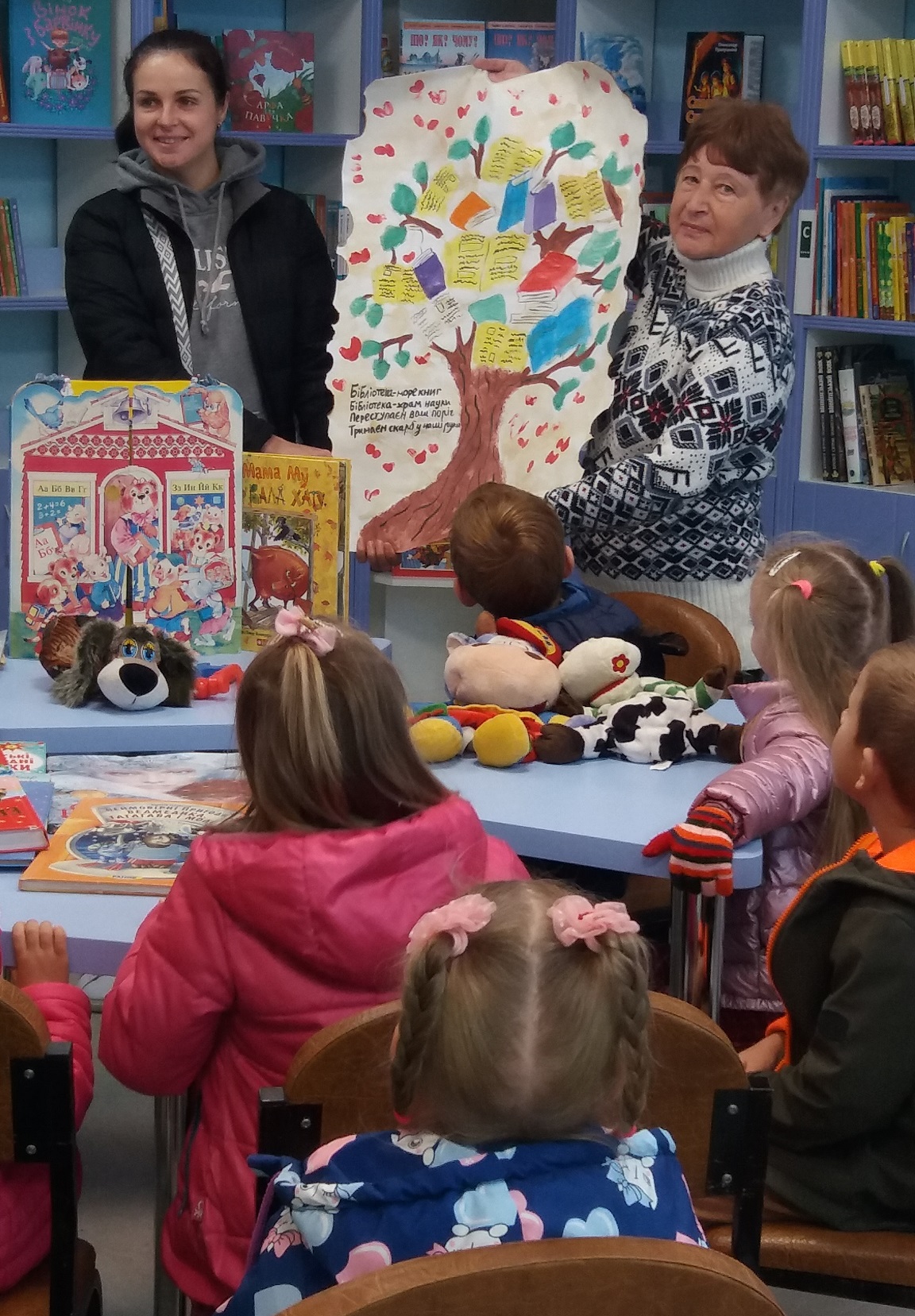 Вони жваво відповідали на питання невеличкої вікторини по казкам, брали участь у ляльковій імпровізації по книзі Юйї і Томаса Вісландерів «Як корова Му хатку будувала».