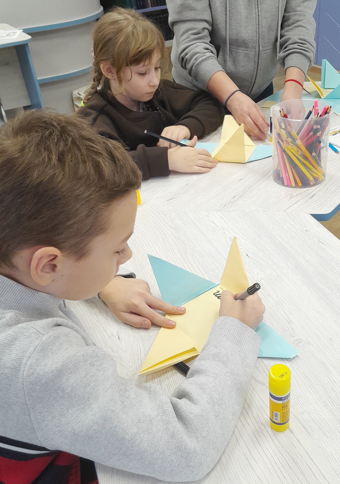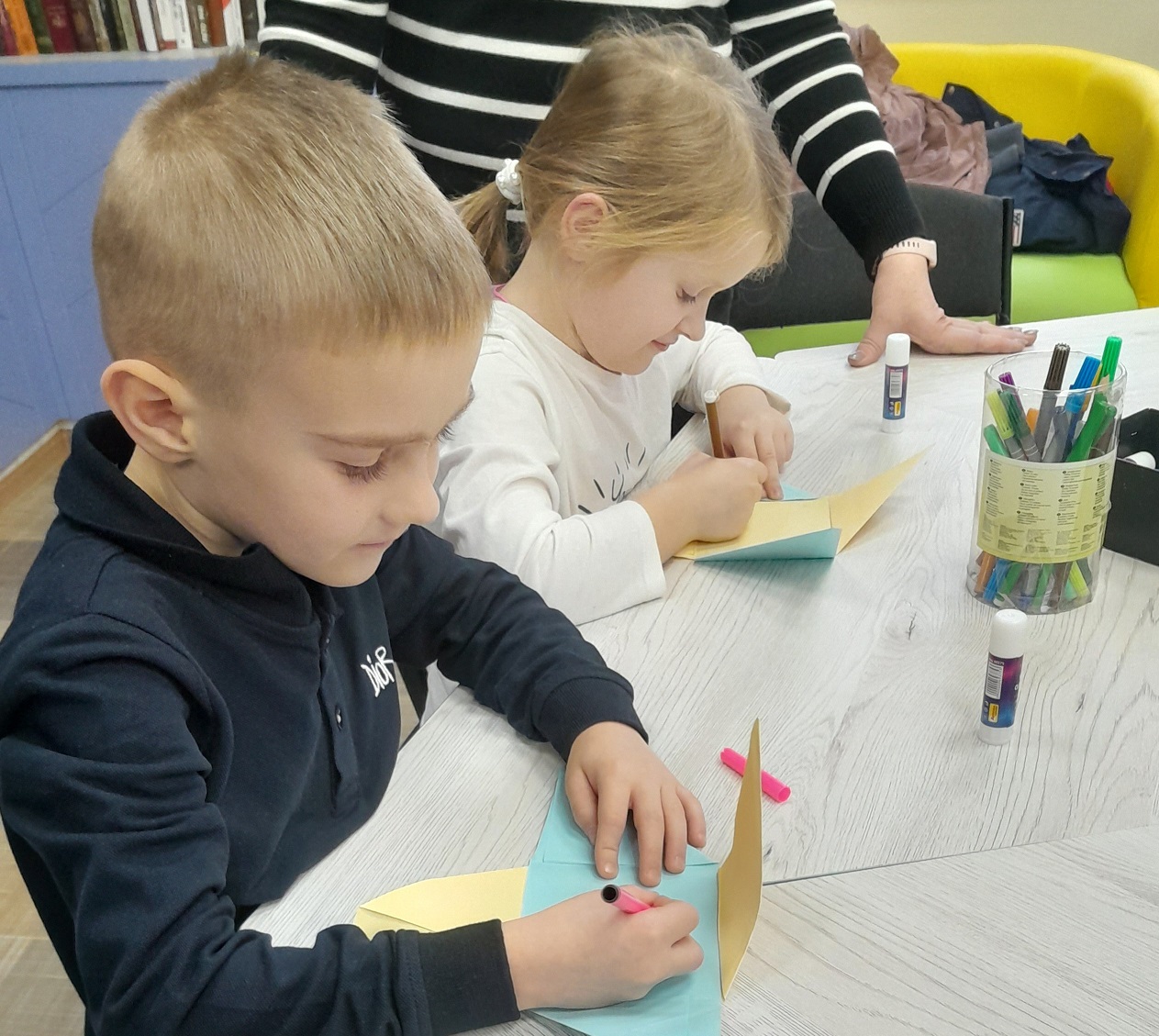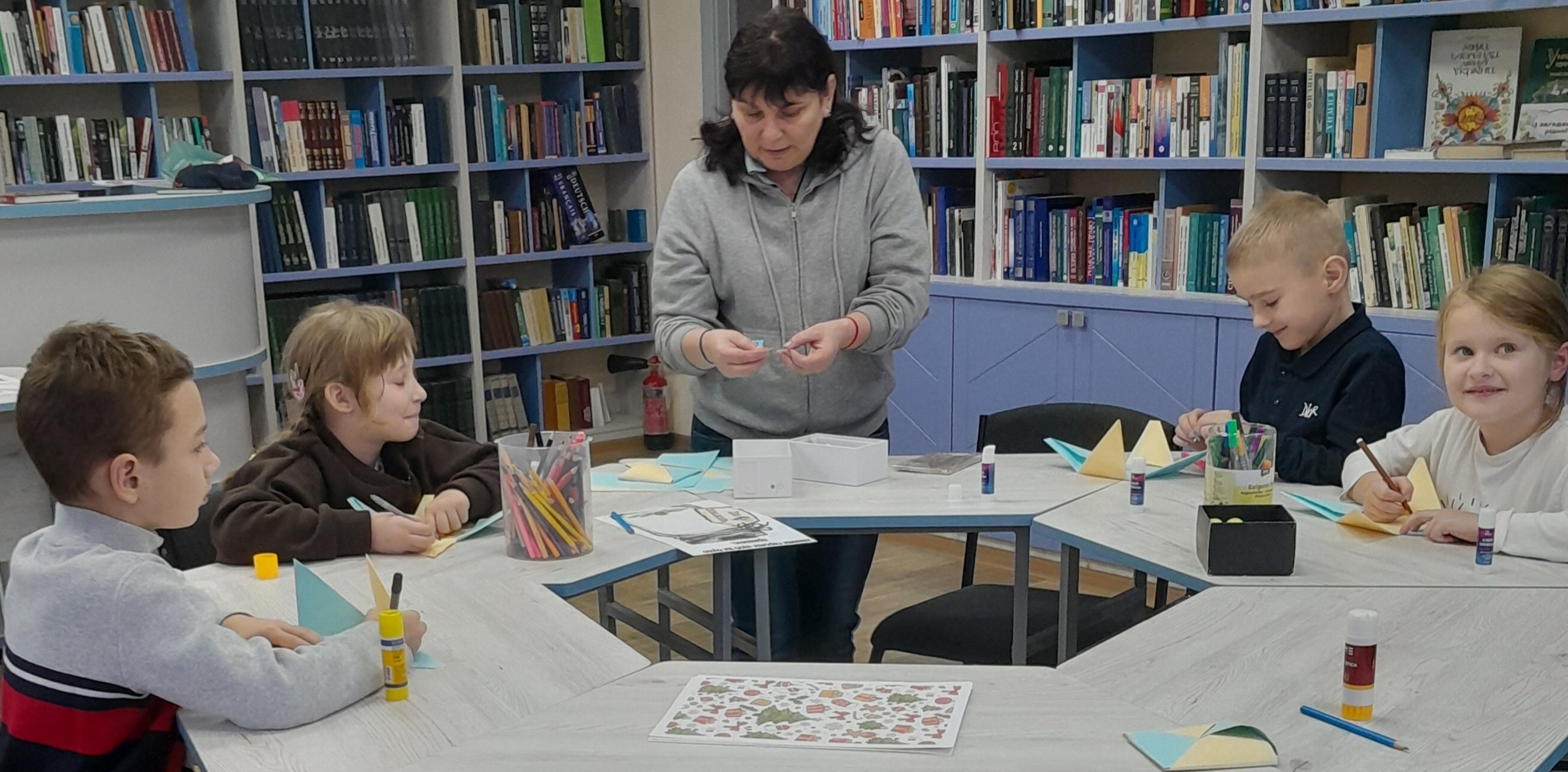 До Дня Збройних Сил України в Бібліотеці сімейного читання панувала особлива атмосфера — щира, хвилююча та дуже тепла. Відбувся зворушливий майстер-клас «Тепло сердець для наших захисників», під час якого діти виготовляли листівки-подяки для наших мужніх воїнів.Під чуйним керівництвом майстрині оригамі і нашої читачки Наталії Мусієнко маленькі учасники створювали святкові листівки в техніці оригамі. Кожна робота була неповторною: з яскравими кольорами, охайними згинами та дитячою щирістю. Та справжня магія відбувалася тоді, коли діти відкривали листівку й власноруч вписували туди свої теплі слова: побажання миру, вдячності, сили, віри та якнайшвидшого повернення додому. Маленькі автори вкладали у свої послання частинку власного серця — і це відчувалося у кожній лінії, кожному слові, кожному малюнку.