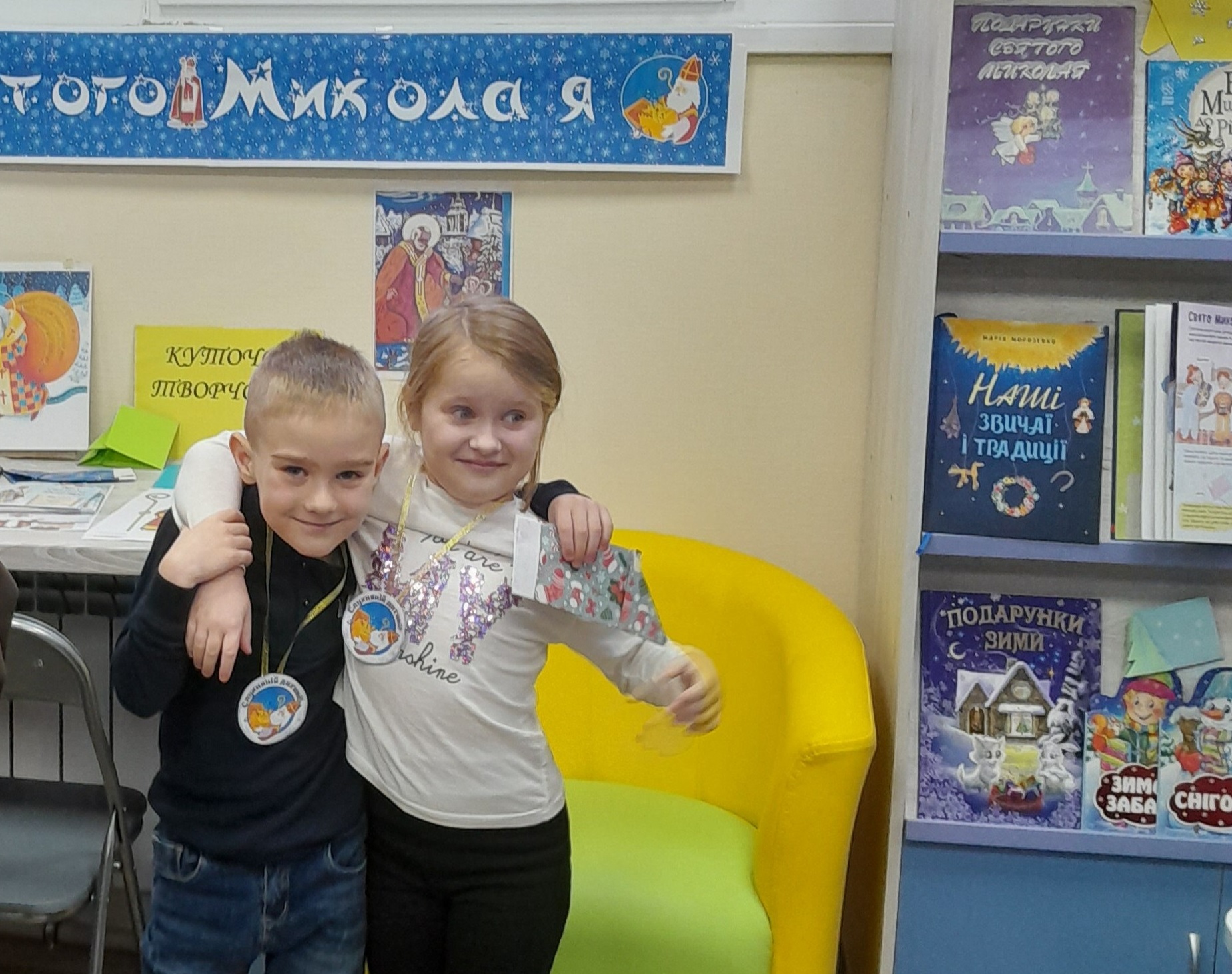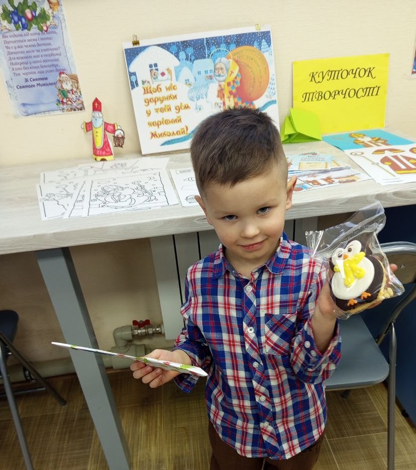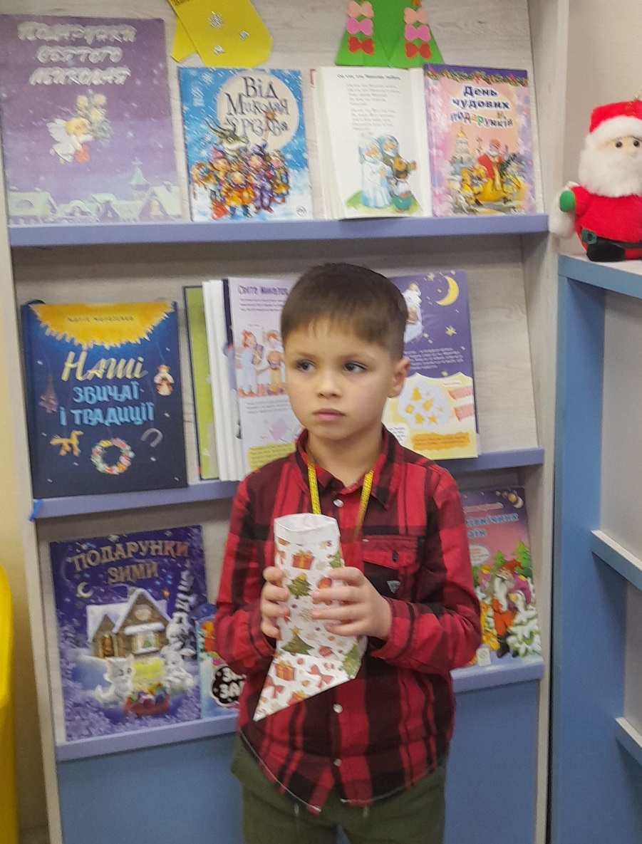 Кожна дитина отримала символічну медальку «Слухняна дитина», а також смачний подарунок — печиво-Миколайчик, яке стало маленьким солодким нагадуванням про свято, що наближається. Дякуємо всім дітям, які завітали до нас і наповнили бібліотеку щирим сміхом, теплом і вірою в диво. Нехай Святий Миколай принесе у ваші домівки добро, радість, мир і багато-багато чудес!