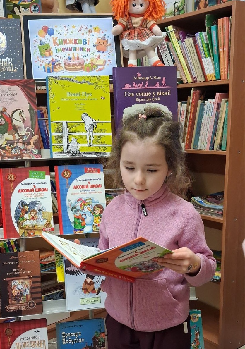 На книжкові іменини до бібліотеки завітали її давні друзі – вихованці дитячого садка-школи «Antoshka Kids». Малеча з цікавістю розглядала книги, слухала розповіді про ці твори і їхніх героїв.