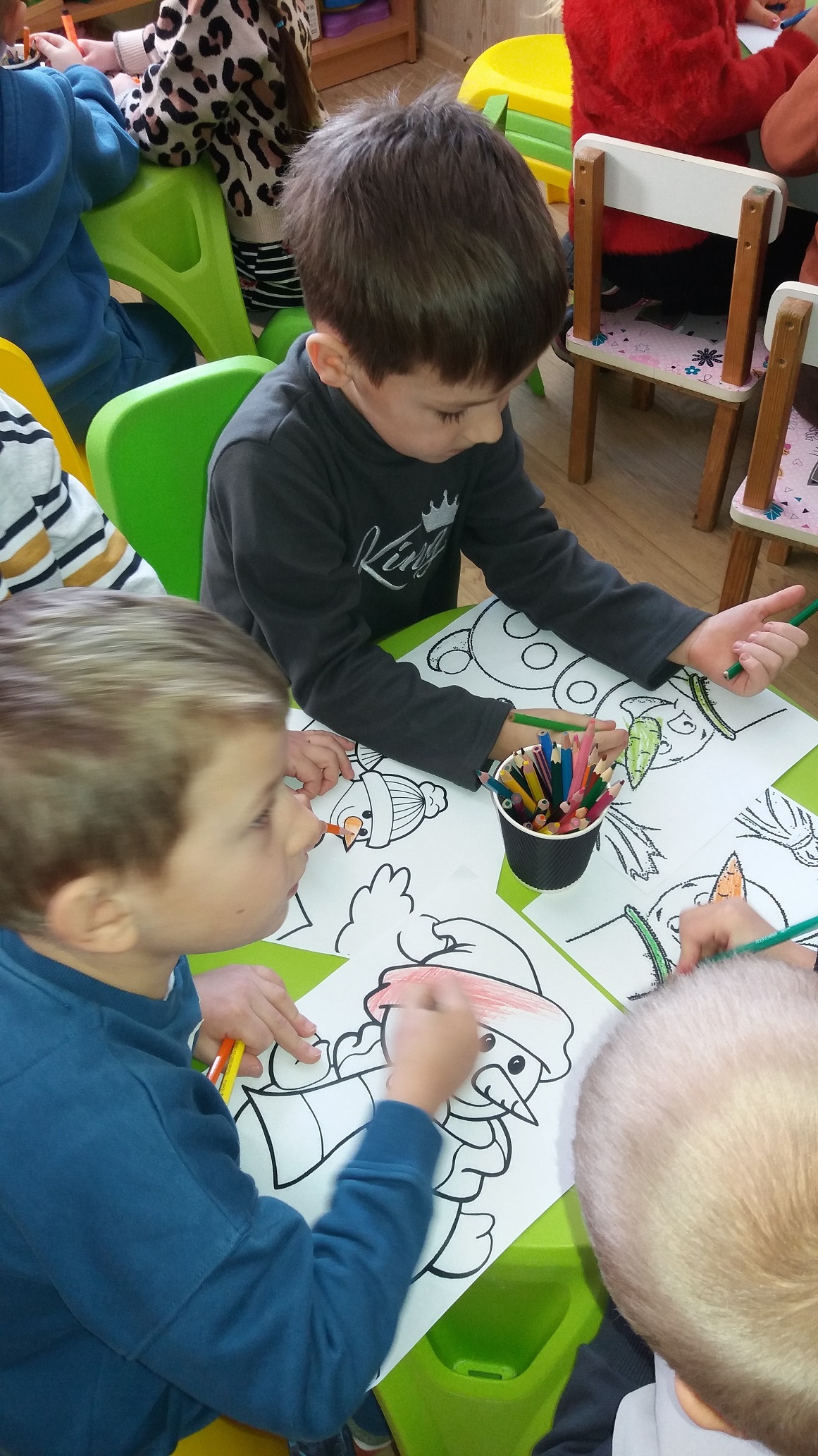 А потім дітки і самі розфарбовували сніговиків. Весело промайнув час.