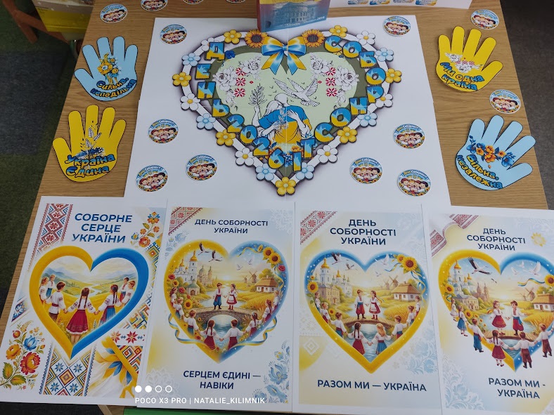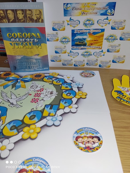 Цього дня користувачі Бібліотеки-філії №35 для дітей мали нагоду переглянути книжкову викладку «За єдність України» та почути урок єднання «Соборна Україна - одна для всіх, як оберіг» з циклу заходів «Україно, ми - дочки твої й сини». Соборність - це не лише про кордони на мапі. Це про людей. Про тих, хто волонтерить, працює, навчає дітей, підтримує словом і теплом. Про кожного з нас, хто щодня робить свій маленький, але важливий внесок у спільну справу.
