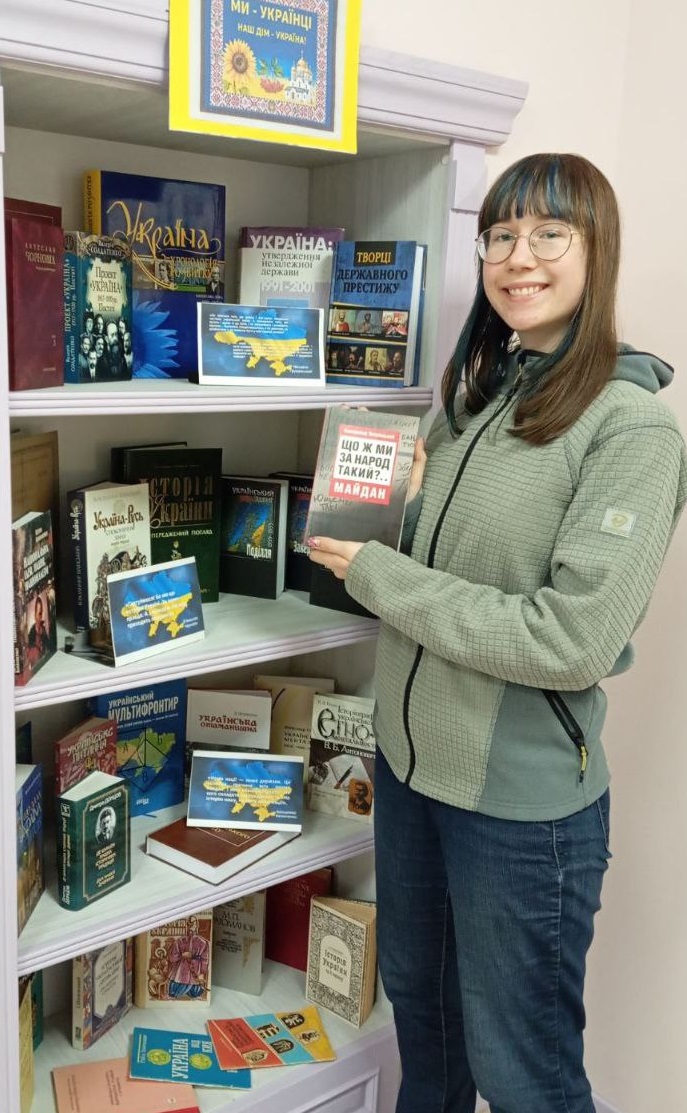 Книжкова експозиція, до речі, цікава для користувачів будь-якого віку, адже серед її «експонатів» – твори відомих українських державотворців Михайла Грушевського, В’ячеслава Чорновола, Володимира Винниченка, книги з історії України та української державності, дослідження науковців, спогади учасників буремних подій, а також інша просвітницька та художня література відповідної тематики для широкого загалу.