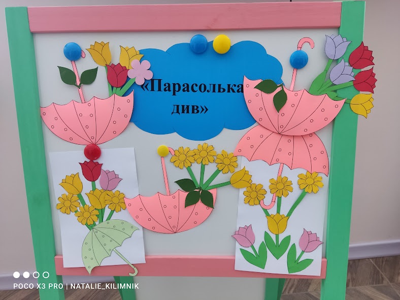 Школярики та дошкільнята дуже творчо поставилися до створення цього корисного предмету і власноруч виготовили індивідуальну парасолю див та дізналися історію виникнення парасольки. Також не обійшлося і без згадки літературних героїв. Так Оле-Лукойє - герой казки відомого казкаря Ганса Крістіана Андерсена мав чудо парасолі і розкривав їх, над слухняними дітьми різнокольорові, завдяки чому вони всю ніч бачили кольорові, прекрасні сни, а над неслухами - розкривав чорну парасолю, звідси і сни чорно-білі. В теплій, дружній атмосфері швидко пролетів час. Це свято, що здатне створити чудовий та гарний настрій, а ще нагода додати більше тепла та радості у повсякденне життя.