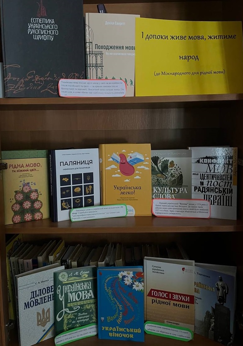 До Міжнародного дня рідної мови, для тих, хто прагне удосконалювати свої знання з рідної мови, Бібліотека сімейного читання № 11 презентує тематичні книжкові виставки «Є мова, є Держава — є майбутнє» та «І допоки живе мова, житиме народ». Знання мови допомагає розширити кругозір, глибше проникнути в культуру країни.