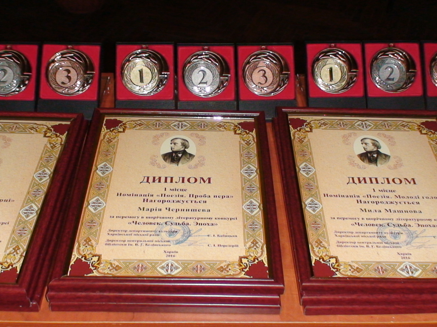 У номінації «Поэзия Проба пера» (Діти до 18 років) Диплом 1 ступеню та золоту медаль отримала Марія Чернишева (м. Дружківка); Дипломом 2 ступеню та срібною медаллю була відзначена Каріна Вєтлова (м. Краматорськ); Диплом 3 ступеню и бронзову медаль отримала Влада Бугайова (м. Харків).