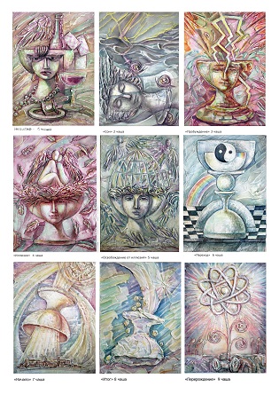 Глядачі часто просять пояснити, що мав на увазі автор, коли створював ту чи іншу картину. Є момент зачаття, виношування та народження. Іноді пологи стрімкі, блискавичні, а іноді важкі та довгі… Ідея створення циклу «9 ЧАШ» – це ступені становлення душі.