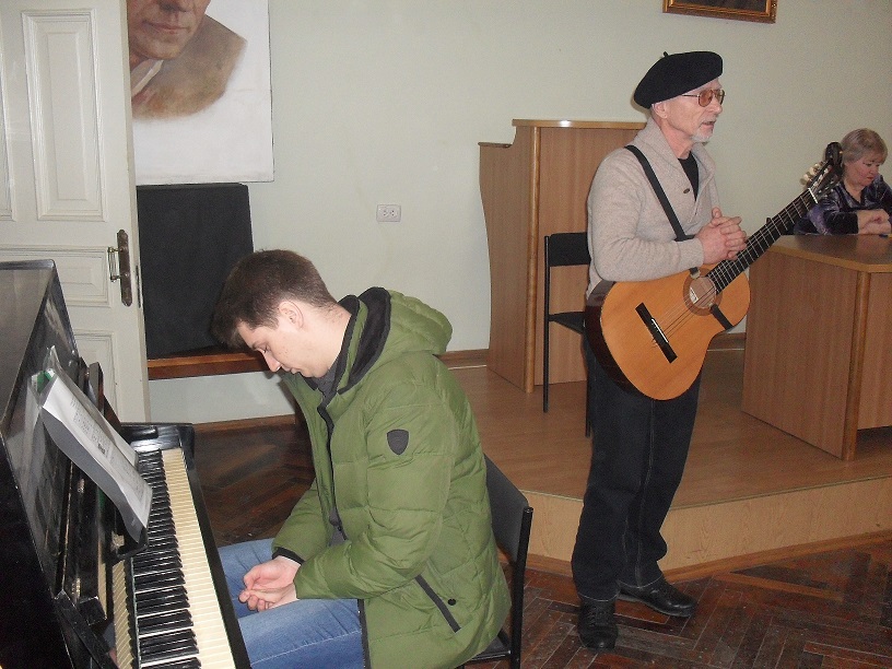 Прикрасою літературно-музичного вечора «Володимир Висоцький: бард, поет, актор…» стали відомі пісні Володимира Висоцького, які чудово виконали талановиті харківські автори-виконавці, члени клубу пісенної поезії ім. Юрія Візбора, Сергій Отводенко та Володимир Фоменко.