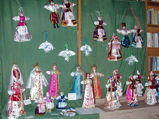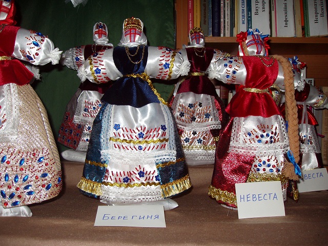 Автор работ Виктория Мусатова ежедневно встречалась с посетителями выставки, знакомила их с историей создания кукол. Традиции и технология их изготовления в их семье передаются из поколения в поколение. Куклы Виктории Мусатовой потрясают красотой и богатством одежды. Их одежда изготовлена из дорогих тканей. украшена вышивкой бисером, расшита красивыми узорами. Считается, что этой красотой кукла привлекает к себе внимание высших сил и становится защитой и оберегом хозяйки или домашнего очага.