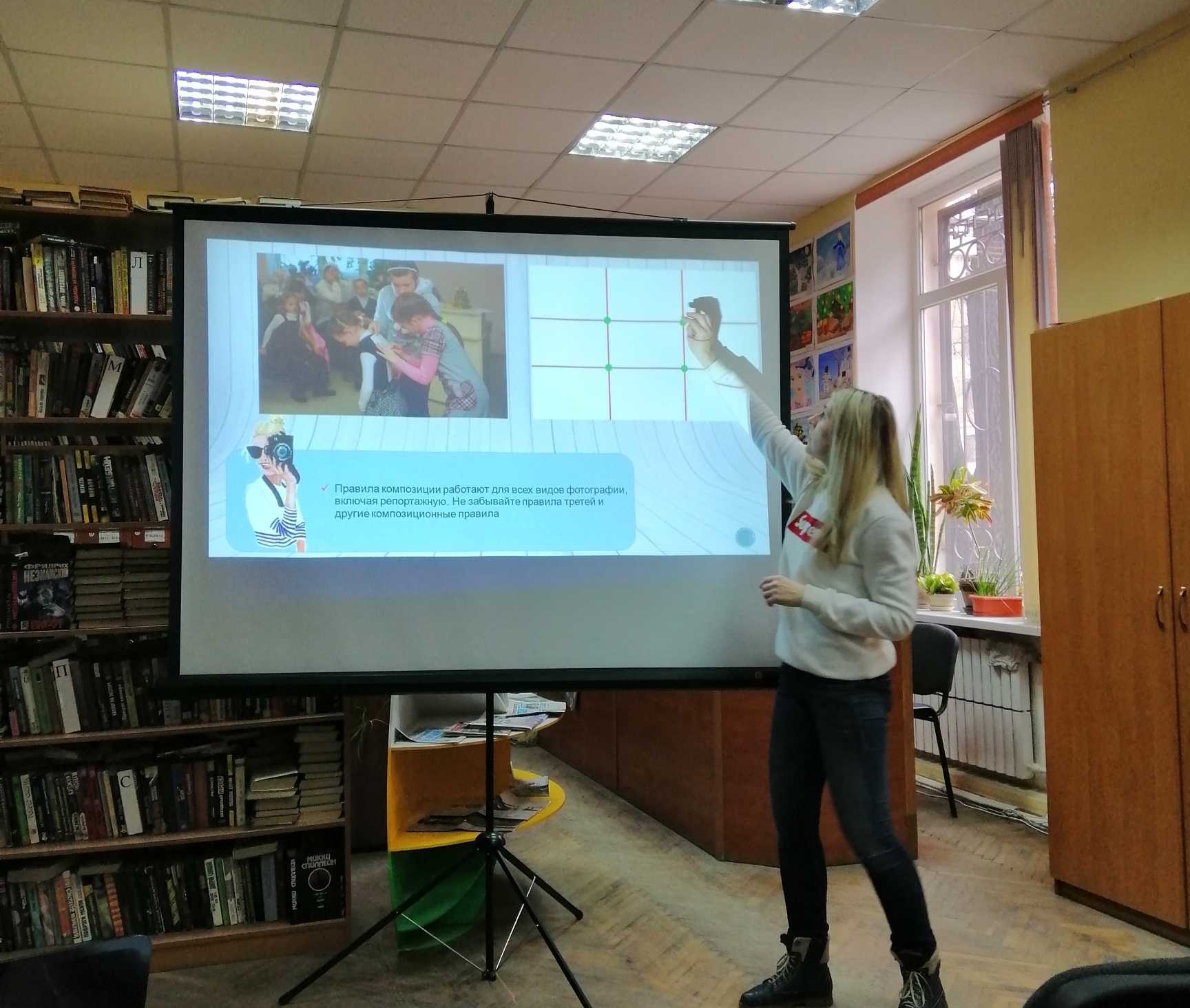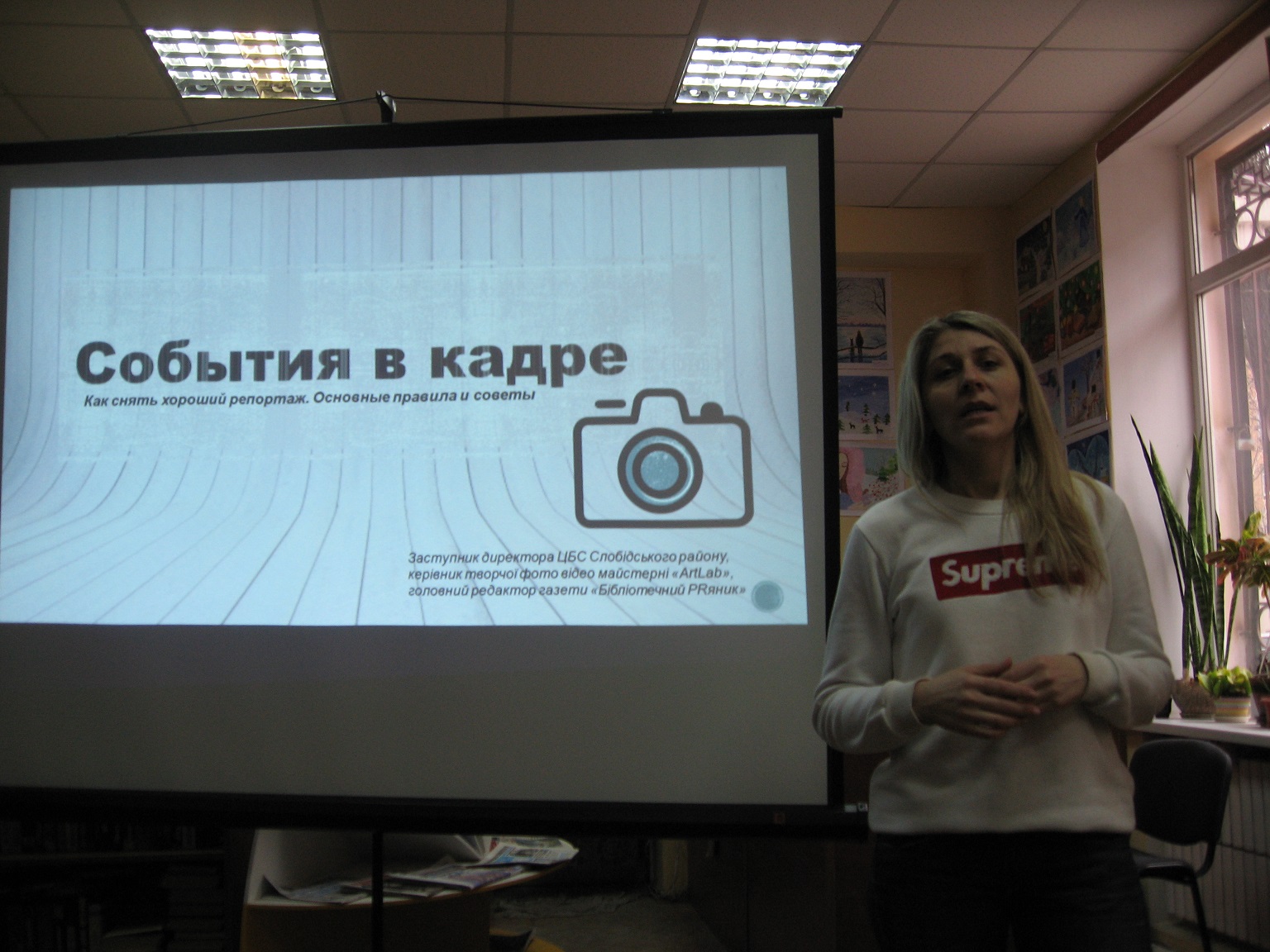 Поради початківцям фоторепортерів, якими і є співробітники бібліотек дала Ольга Володимирівна Терещенко, заступник директора ЦБС Слобідського району, керівник творчої фото відео майстерні «ArtLab».