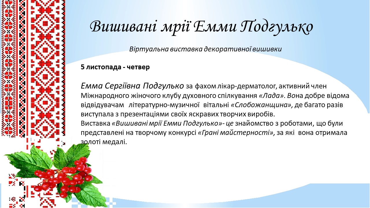 Вишивані мрії Емми Подгулько. Віртуальна виставка декоративної вишивки