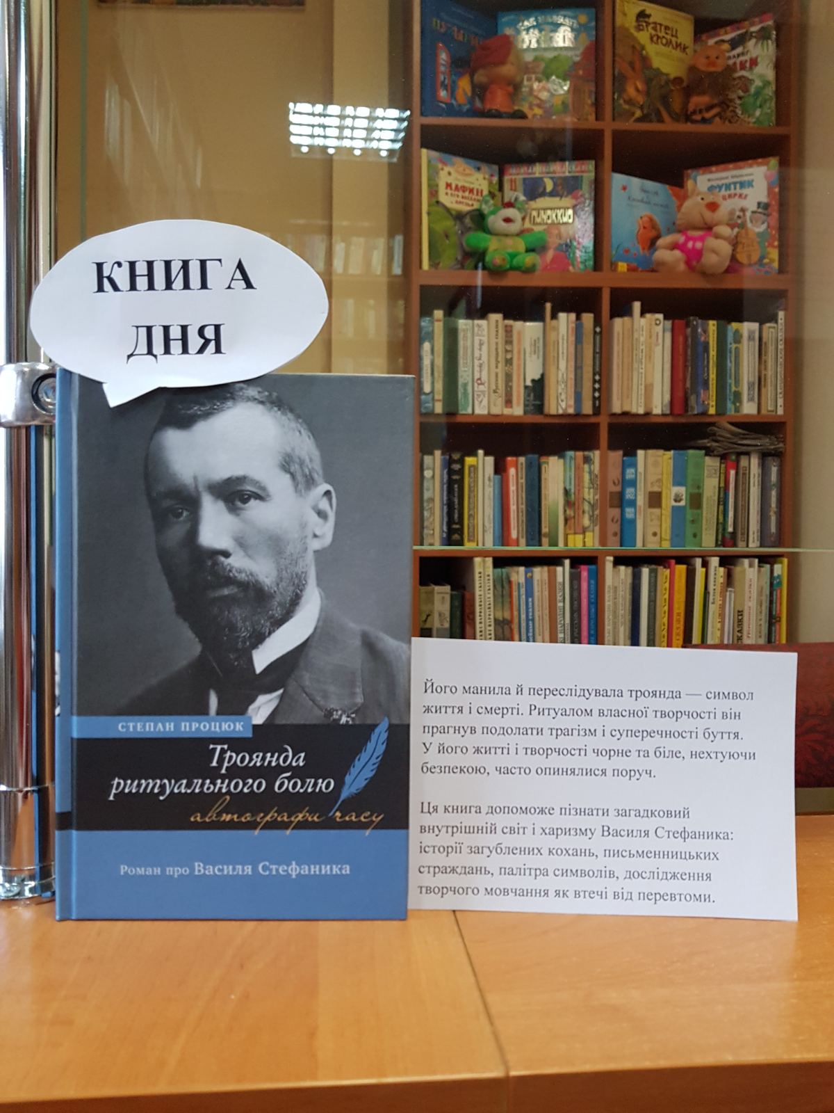 До 150-річчя від дня народження Василя Стефаника у бібліотеці-філії № 22 представлена міні-виставка однієї книги Степана Процюка «Троянда ритуального болю». Ця книга допоможе пізнати харизму і внутрішній світ Василя Стефаника: історії загублених кохань та письменницьких страждань.