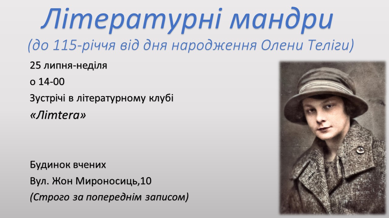 Літературні мандри (до 115-річчя від дня народження Олени Теліги)
