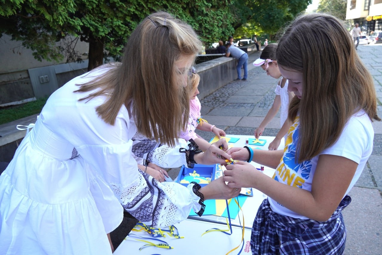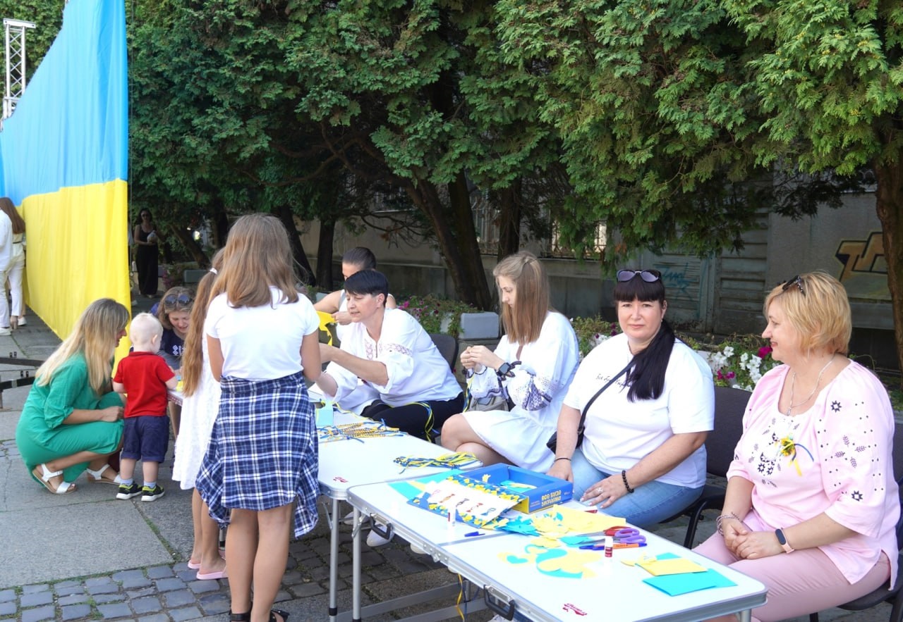 На Поштовій площі Ужгороду розмістили свої святкові локації працівники відділу обслуговування бібліотеки. Зацікавила містян та гостей Ужгороду книжкова виставка, на якій були представлені твори українських авторів. А для дітлахів чудовою розвагою став майстер-клас із виготовлення патріотичної символіки, який провели працівники Ужгородської публічної бібліотеки.