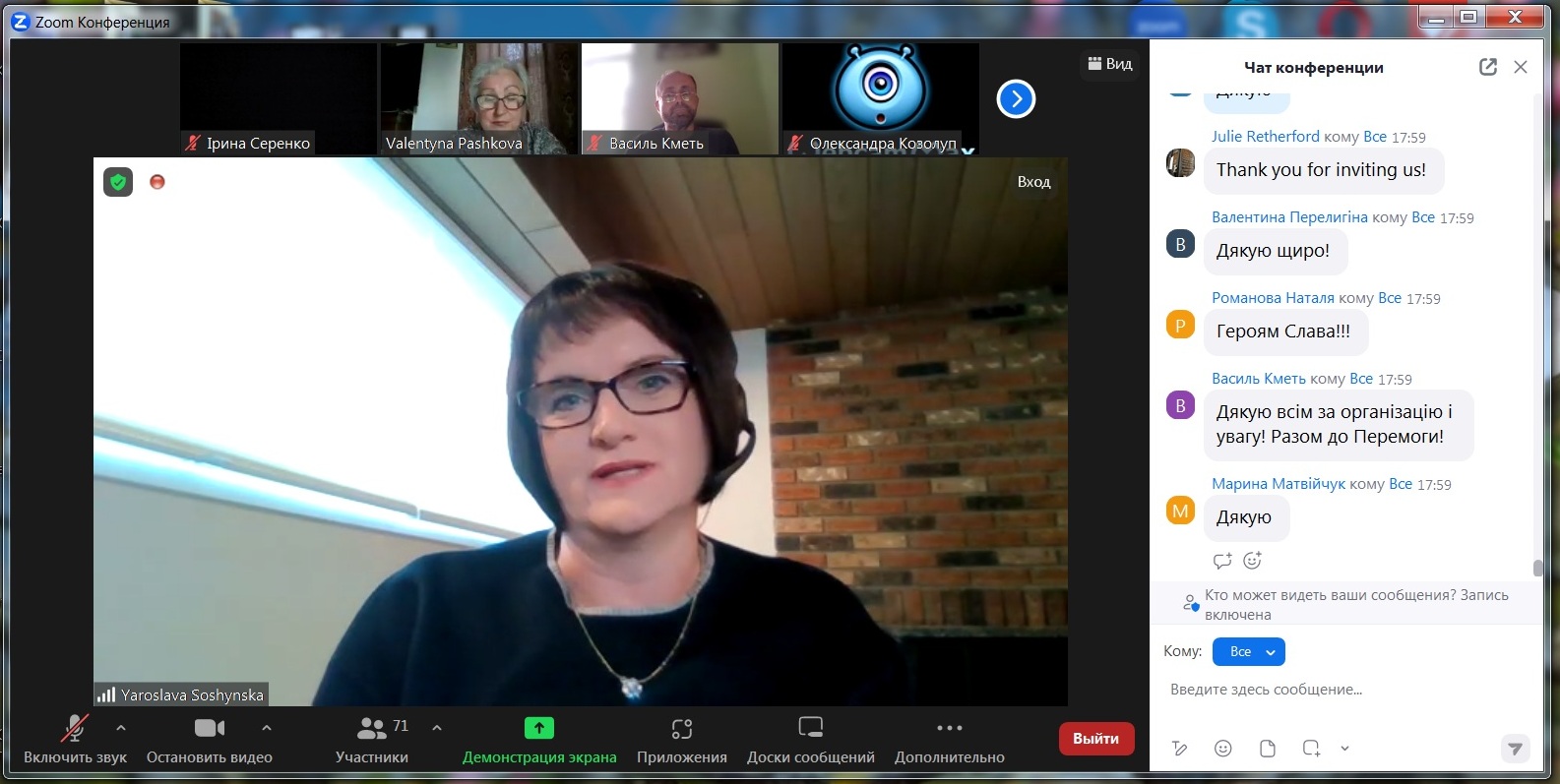Модератор: Валентина Пашкова, докт. іст. наук, доц., заслужений працівник культури України, голова Експертної ради ВГО Українська бібліотечна асоціація.