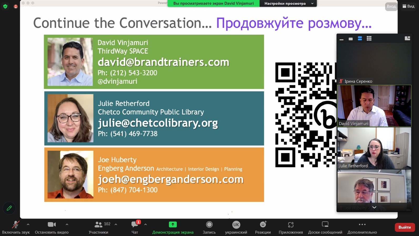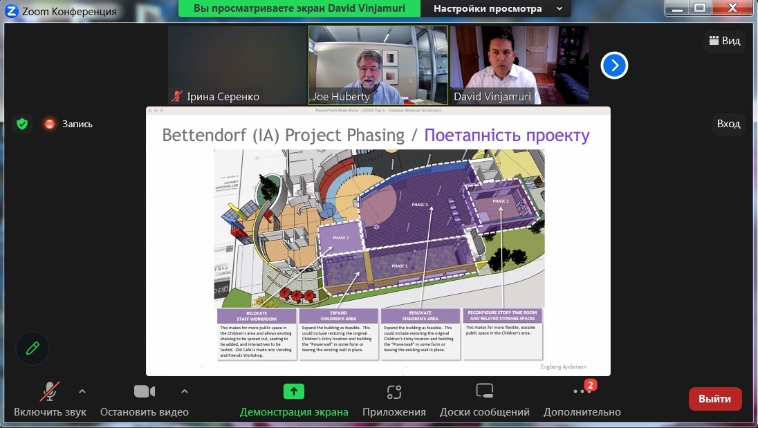 Американські фахівці – планувальник простору, архітектор і бібліотекар публічної бібліотеки, а також український бібліотекар поділилися про фаховий підхід до оновлення простору бібліотек.