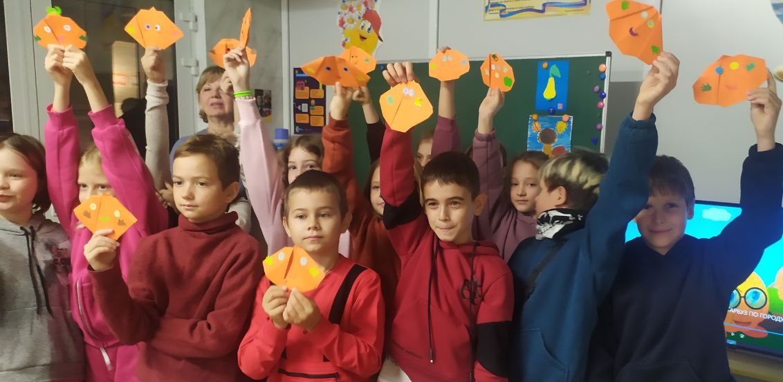 Бібліотека сімейного читання Шевченківського району спільно з керівником гуртка оригамі «Дзунако» ЦДЮТ № 1 і нашою читачкою Мусієнко Наталією Валеріївною у метрошколі відсвяткували з учнями ліцею № 147 «День гарбуза».
