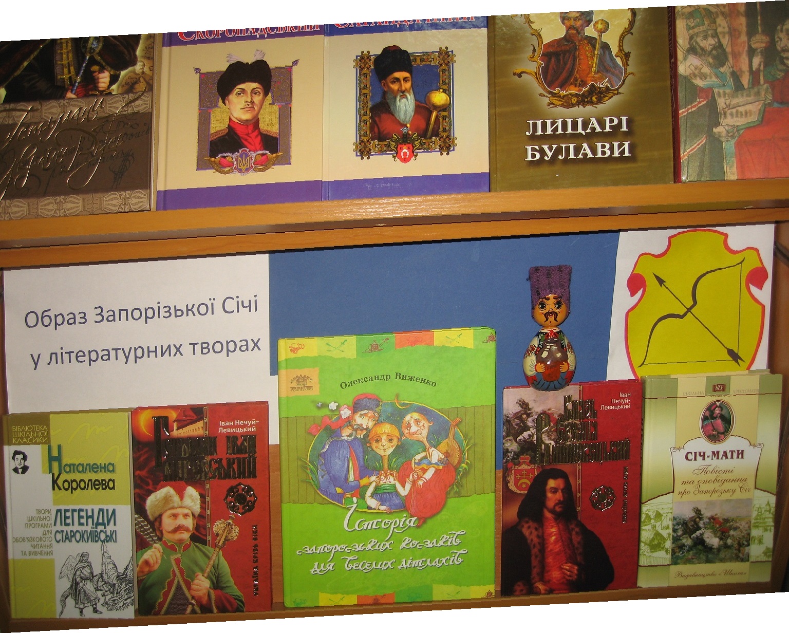 На виставці представлені книги ,які знайомлять читача з історією культури української держави, з фактами прийняття українського козацтва в світі того часу .Автор Мельничук Ю. в своїй книзі «Основи козацько-лицарського виховання», обґрунтовує форми та методи виховання у дітей історичної пам’яті та національної гідності. Козаків поважали, вони потрясали усіх своєю військовою майстерністю та небаченою сміливістю. Національним ідеалом на довгі часи став запорізький козак-лицар честі та мужності, захисник Батьківщини, про це читач дізнається з книги Лепко В. «Українське козацтво». Особливу цікавість на виставці викликає видання про героїв українського козацтва-гетьманах ,сотниках, козацьких отаманах.