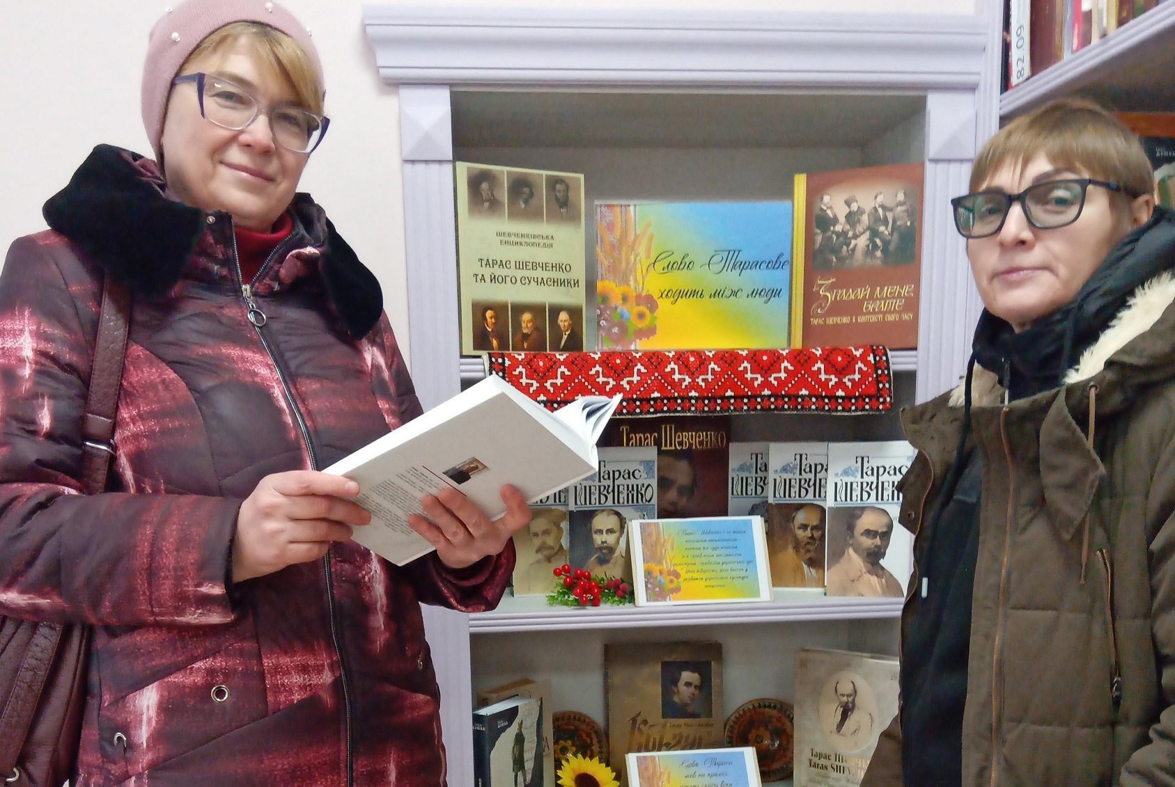 Відвідувачі біля книжкової виставки, присвяченої великому Кобзареві, вголос читали свої улюблені вірші поета та ділилися відчуттями, ким для них є Шевченко, які саме рядки його творів знаходять відгук в їхньому особистому житті сьогодні.