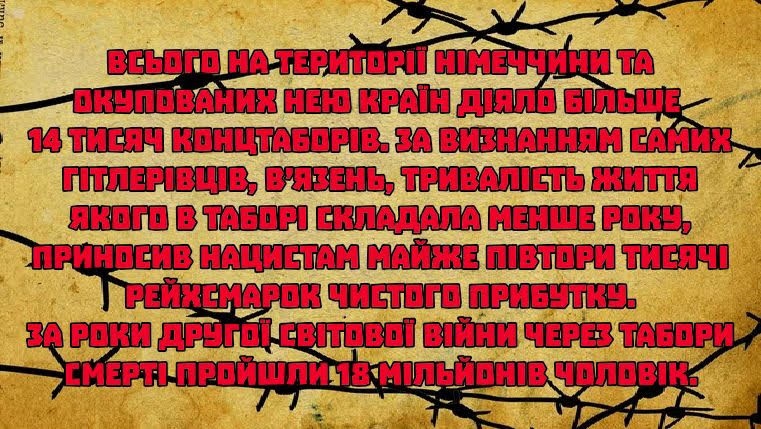 11 квітня, у Міжнародний день визволення в'язнів нацистських концтаборів, світ віддає данину скорботної пам'яті жертвам, які загинули у концтаборах, і Україна разом з усім світом вклоняється людям, які пройшли крізь жахіття нацистських катівень.
