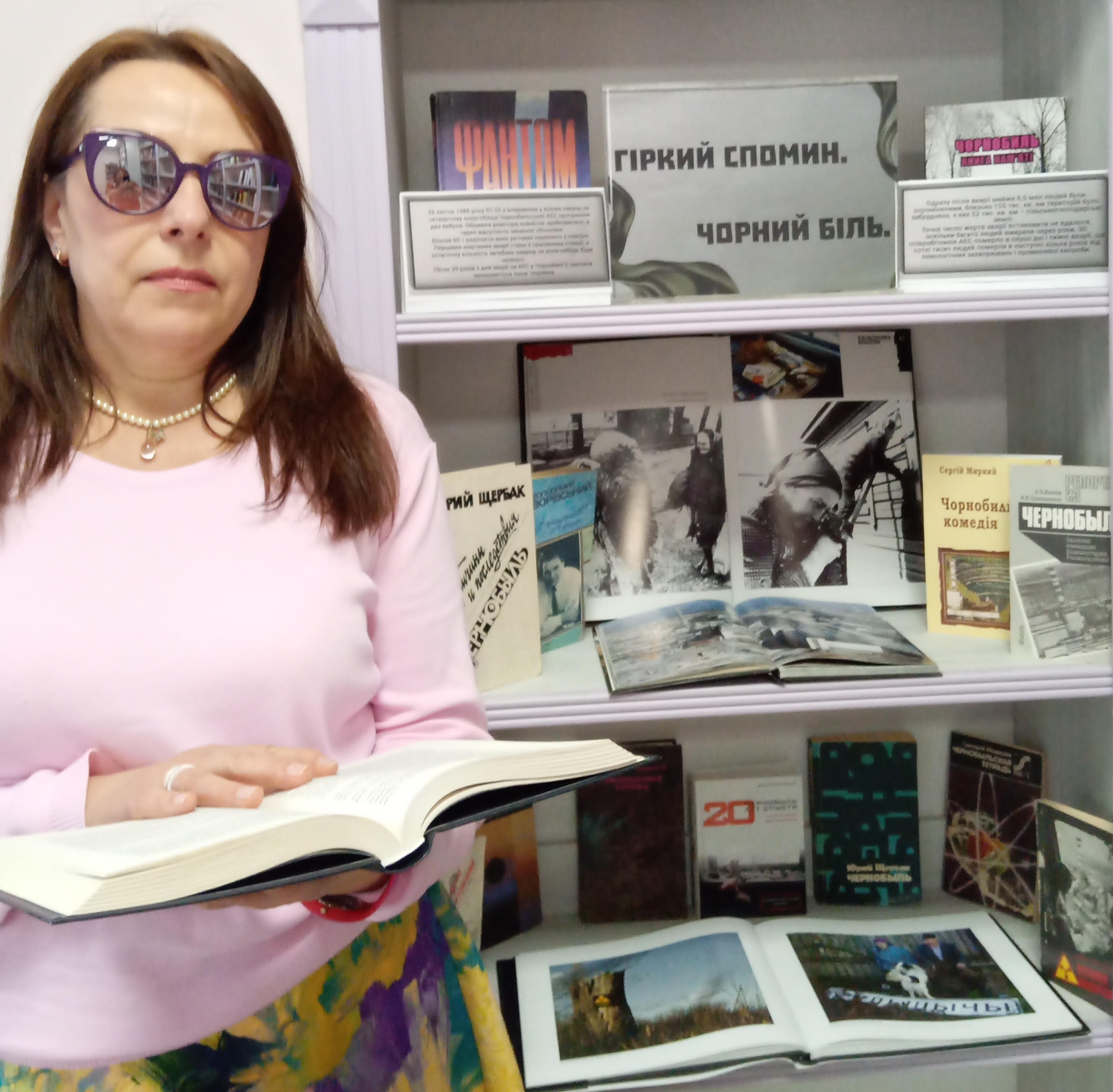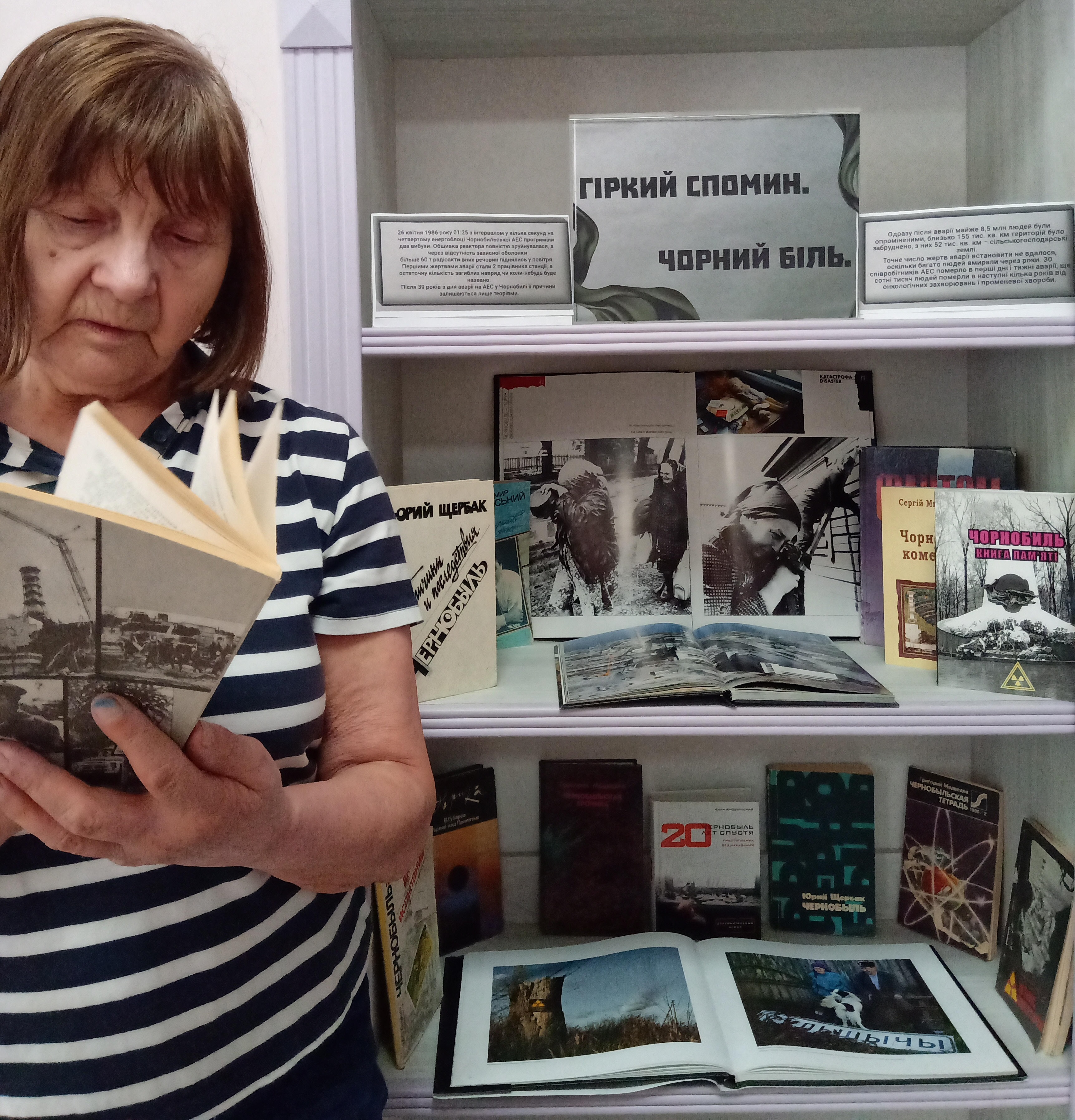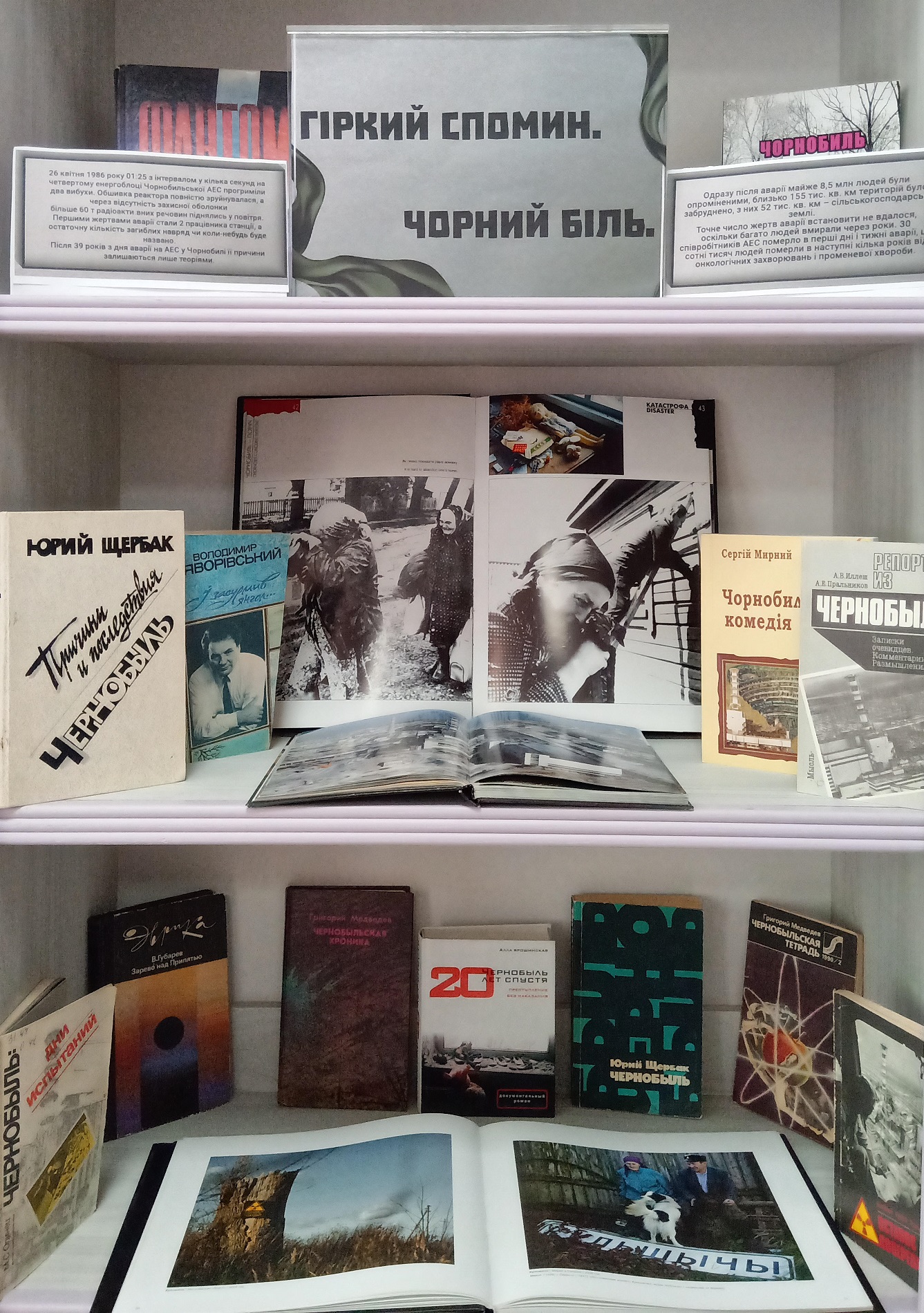 До заходу була оформлена книжкова виставка, література якої містить художні оповіді і документальну хроніку, наукові дослідження і версії щодо причин трагедії, спогади очевидців про перебіг подій і розповіді про ліквідацію наслідків аварії, малюнки дітей і фоторепортажі різних років із місць ураження.