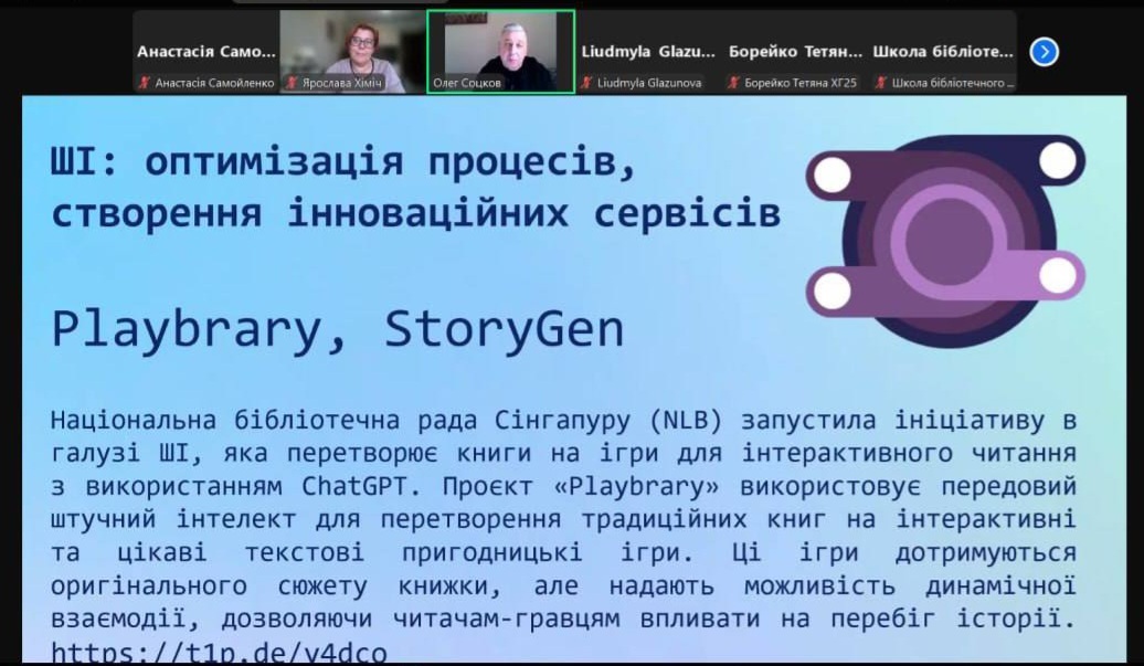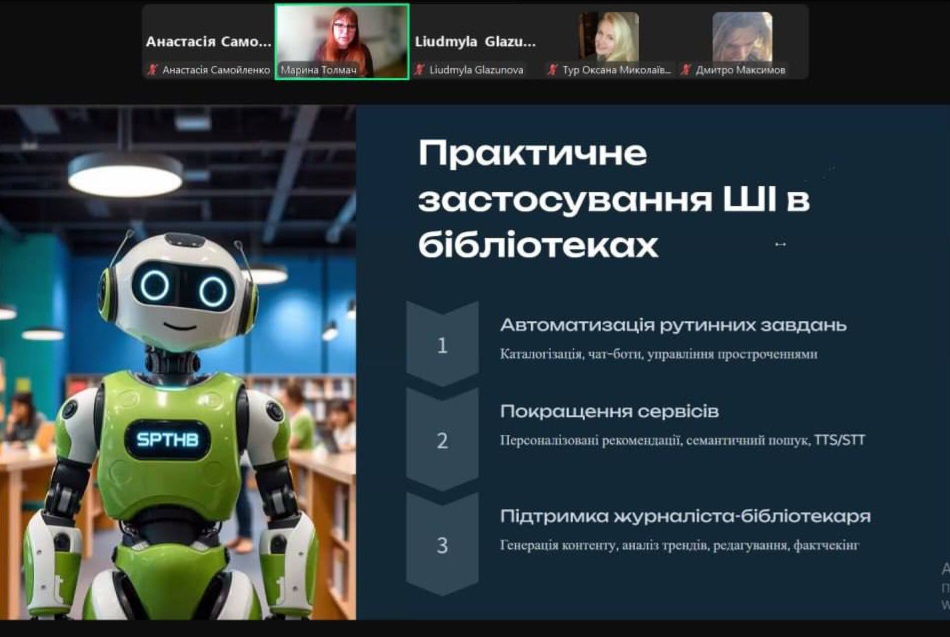 Завдяки такої можливості учасники опановували новітні практики використання ШІ в роботі бібліотек, обговорювали актуальні проблеми бібліотечної журналістики, ділилися лайфхаками для створення власних медіапродуктів.