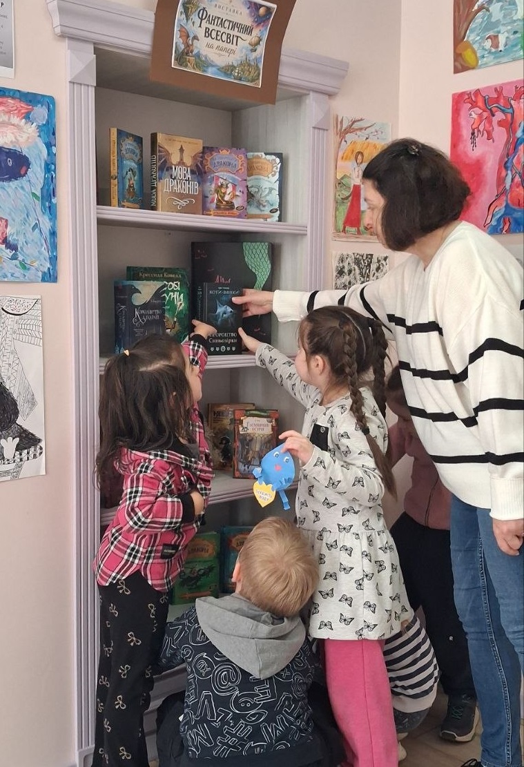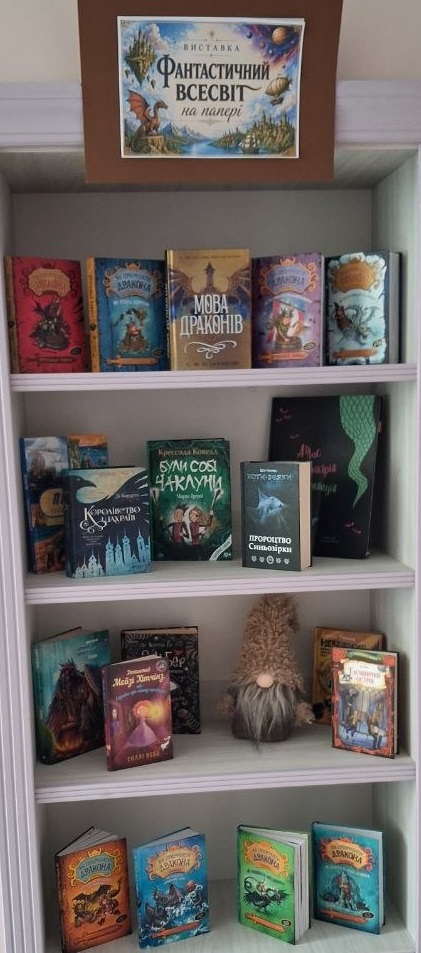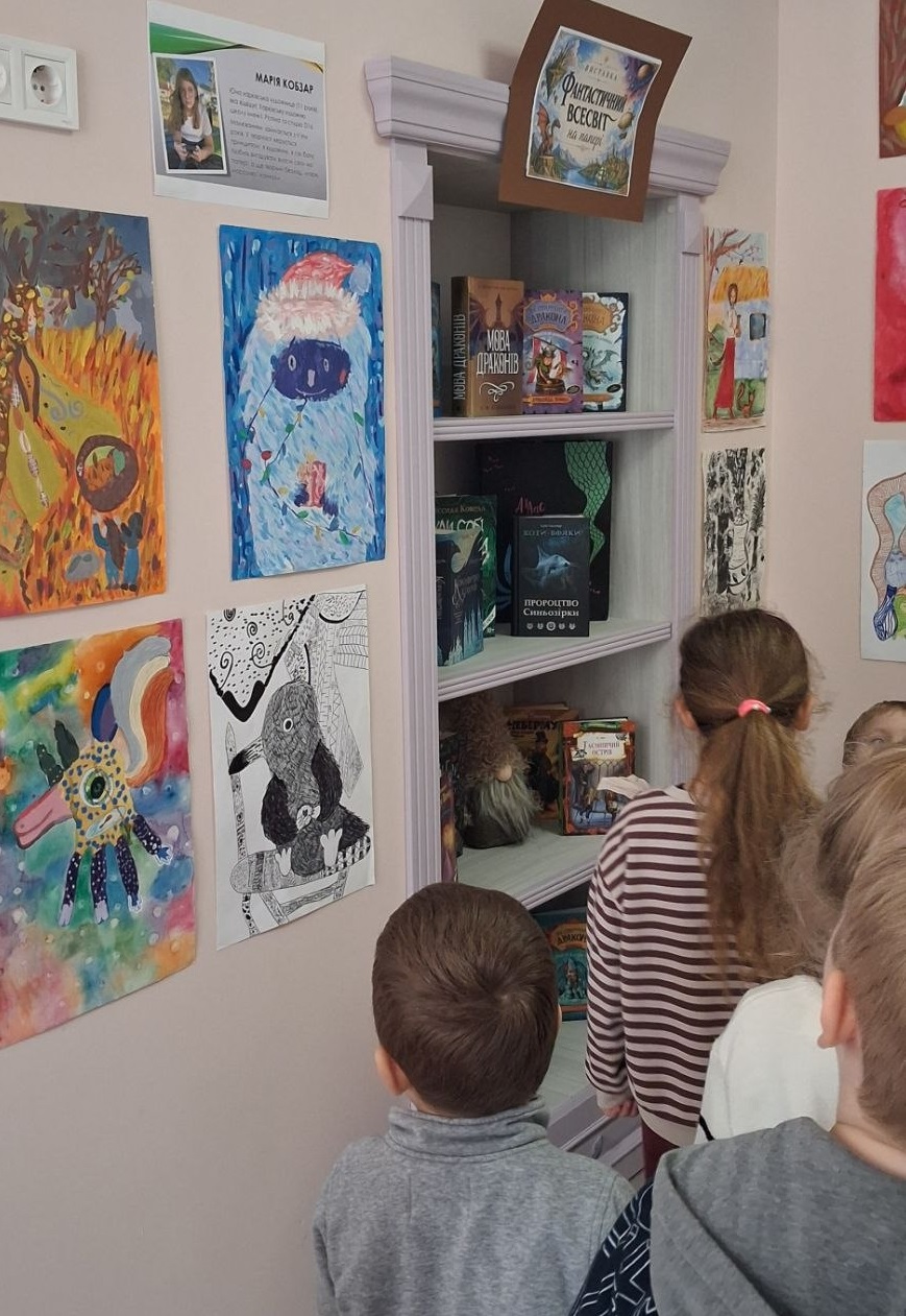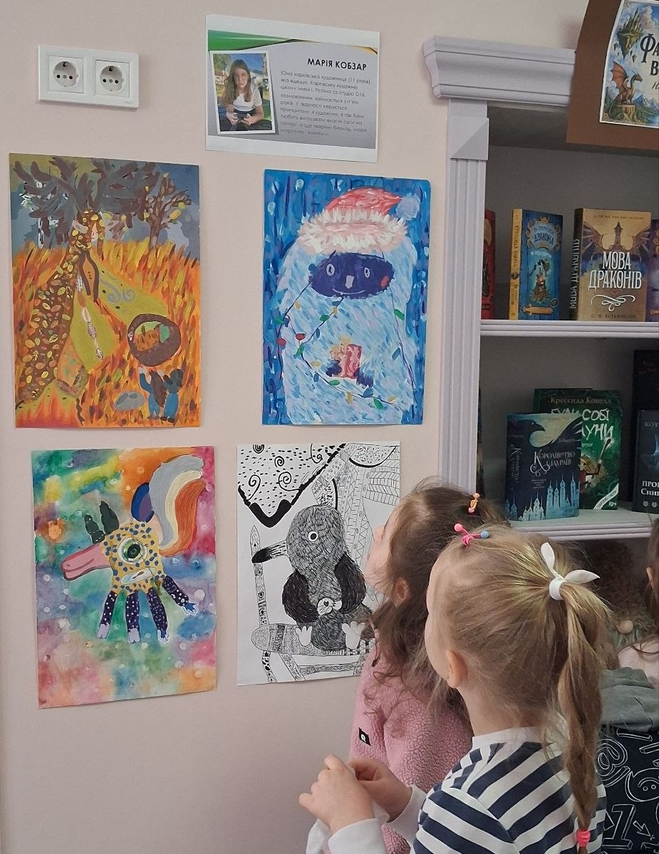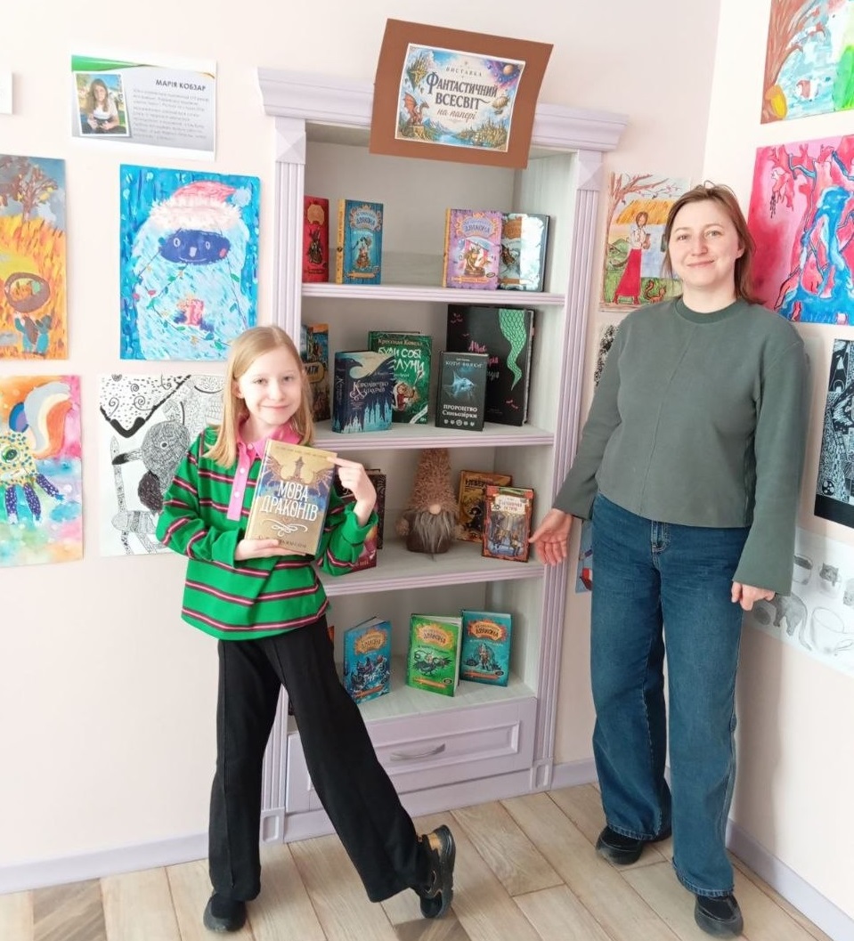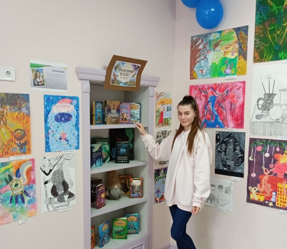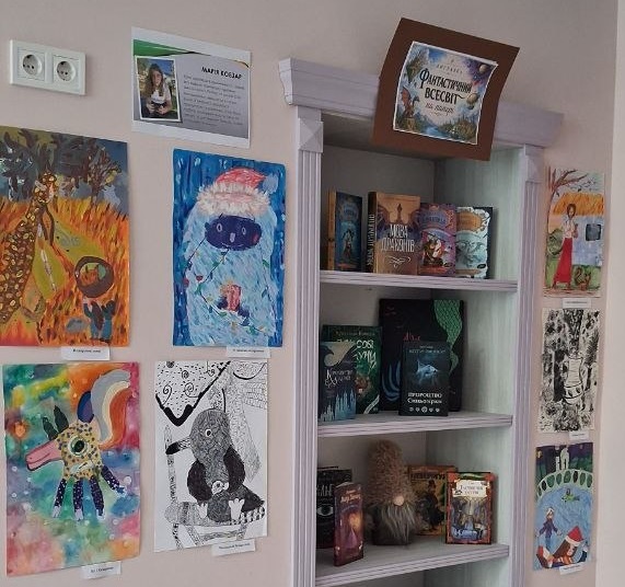 Роботи юної харків’янки зацікавлять будь-яку публіку – і дитячу, й дорослу. А ще підбірка відповідної літератури. Поряд з Марійчиними малюнками розгорнута й книжкова виставка з колекцією неймовірних історій про фантастичні, вигадані людською уявою світи.