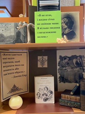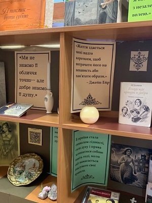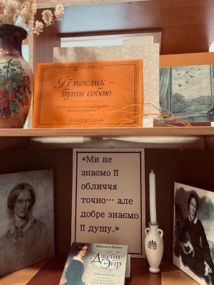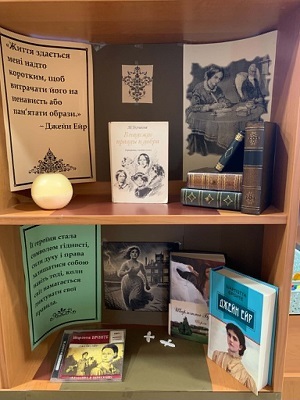 У бібліотеці читачів чекала виставка «ЇЇ поклик – бути собою», присвячена 210-річчю від дня народження Шарлотти Бронте — жінці, яка подарувала світові незабутню Джейн Ейр. Читачі могли зазирнути за сторінки відомого роману: дізнатися про непросту долю письменниці, несподівані факти її життя, відкрити її твори в різних форматах і, можливо, знайти свою особисту зустріч із Шарлоттою Бронте. А бажаючі могли подивитися цікаве відео про життя і творчість письменниці.