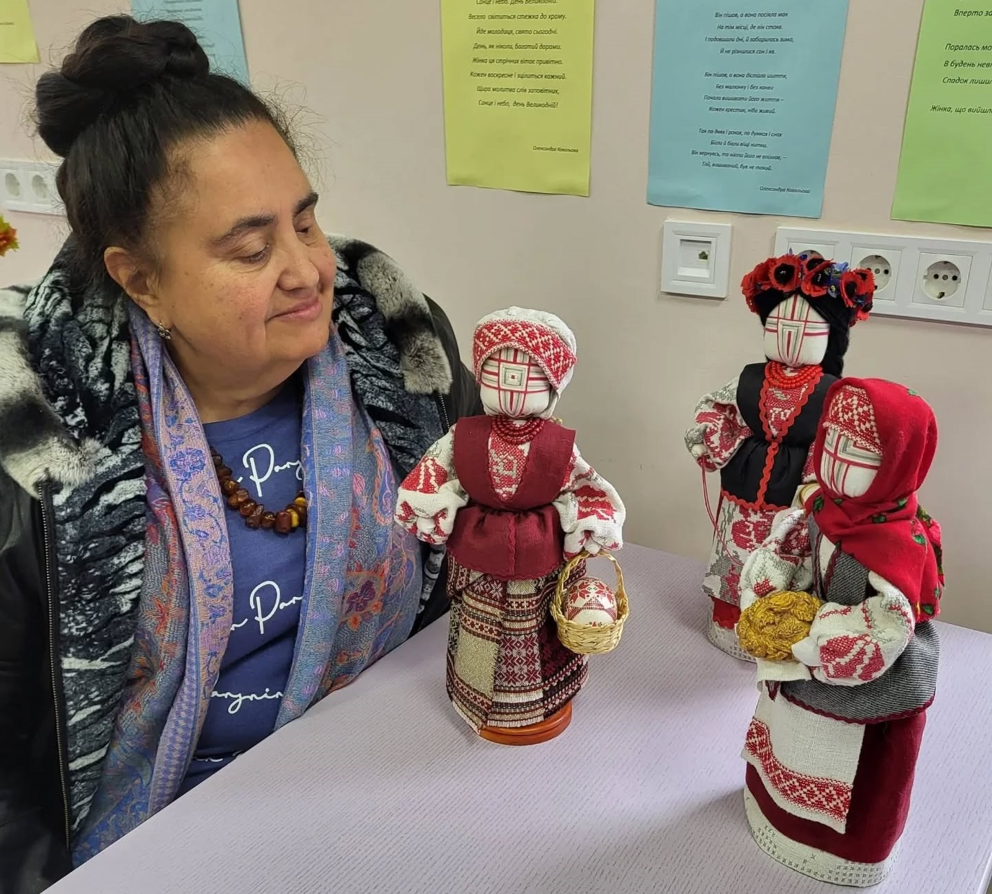 Серед гостей на зустрічі також була майстриня Юлія Соловйова, чиї вузлові ляльки представлені на виставці в нашій читальній залі.