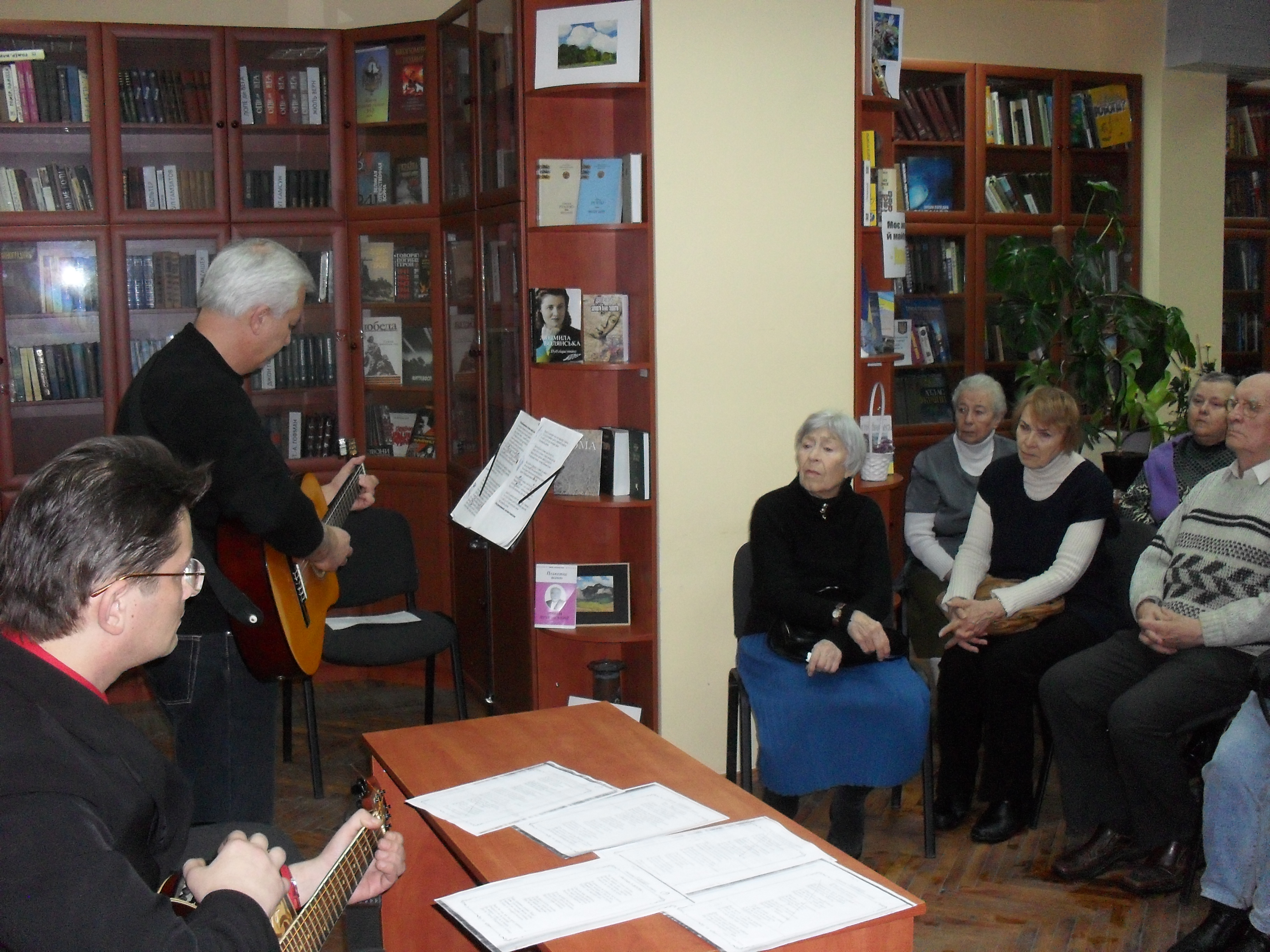 Окрасою літературно-музичного вечора став виступ молодого харківського поета і автора-виконавця Сергія Отводенко, який не тільки чудово виконував пісні талановитого автора, а й читав свої вірші присвячені