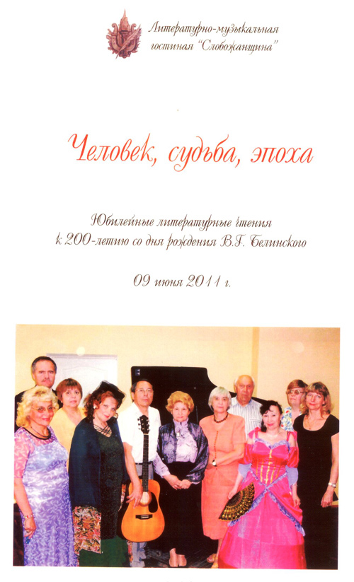 С 2012г. литературный конкурс «Человек, судьба, эпоха…» стал ежегодным, проходит в 2 номинациях (духовно-философская, гражданская поэзия и проза) и стал носить имя В.Г.Белинского. В этом году в литературном конкурсе приняли участие 78 поэтов и писателей из 12 городов Украины и России.