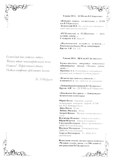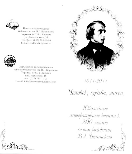 9 июня 2011г. к 200-летию со дня рождения Виссариона Григорьевича Белинского Центральной городской библиотекой им.В.Г.Белинского был объявлен и проведен совместно с Союзом писателей России (харьковское отделение) литературный конкурс «Человек, судьба, эпоха…», в котором приняли участие харьковские поэты.